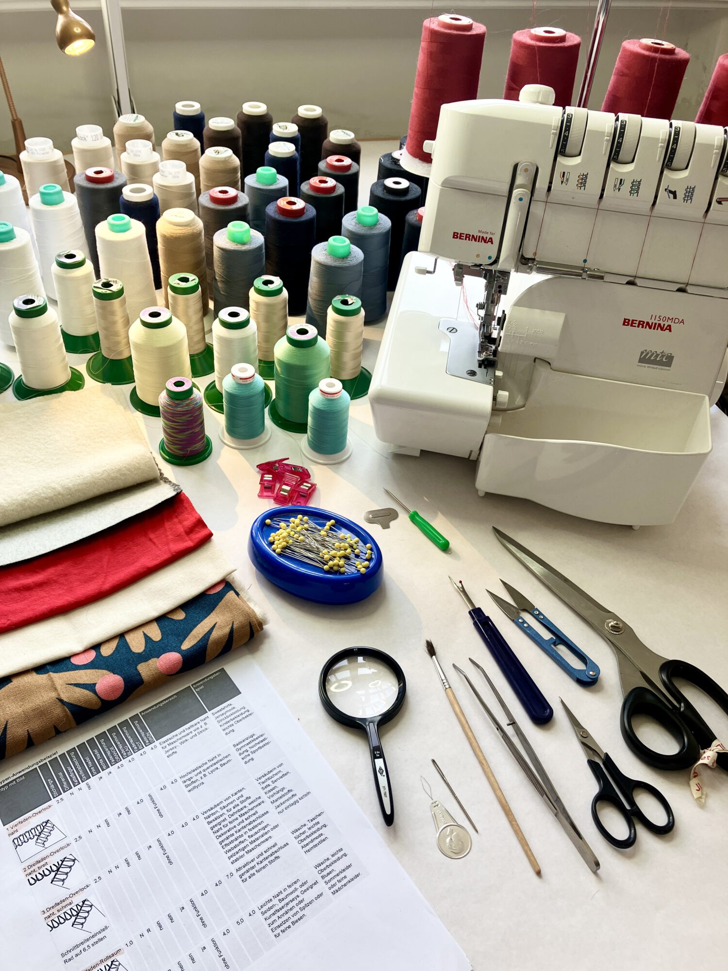 - die Basisausstattung an Nähmaschinen, Werkzeugen, Hilfsmitteln und Verbrauchsmaterialien (Web- oder Jerseystoffe, Garne, Reißverschlüsse) stellen wir,